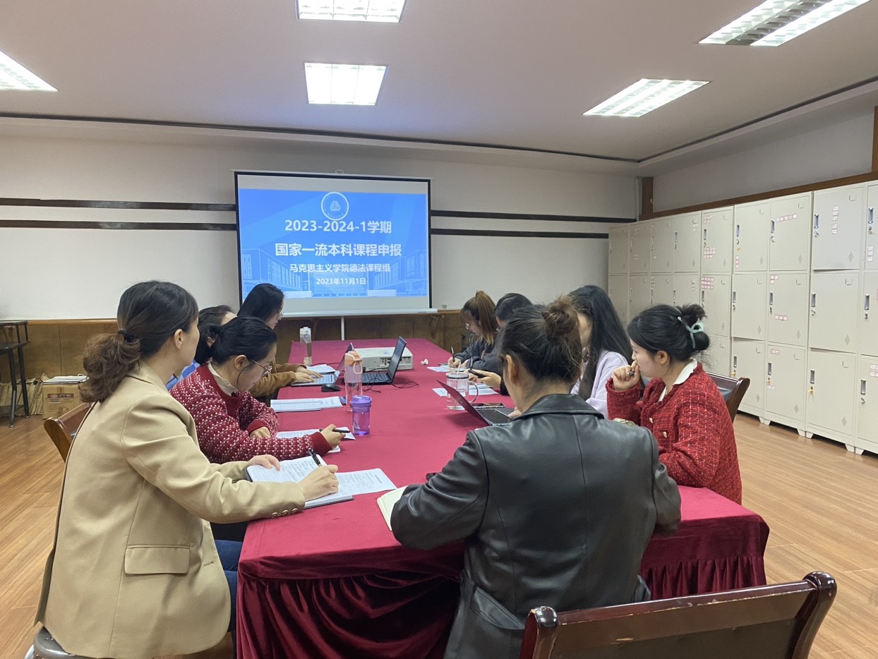 2023年11月1日下午,304永利集团登录入口《思想道德与法治》课程组召开课程组集体会议暨“国家级一流本科课程”申报动员会,会议由304永利集团登录入口副经理李瑶老师主持,304永利集团登录入口教学及综合办公室主任黄楠老师,思政教研室主任王婉老师、思政教研室副主任彭雅丽老师、《思想道德与法治》课程组教师、《形势与政策》课程组赵燕妮老师、《中国近现代史纲要》课程组孔倩倩老师参会。