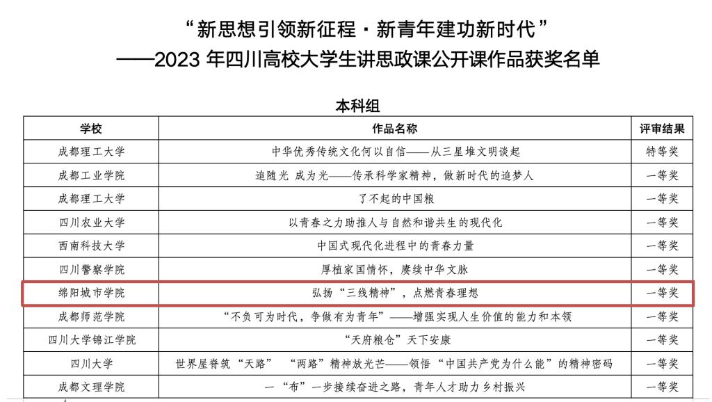 近日,由中共四川省委教育工委组织的“新思想引领新征程·新青年建功新时代”——高校老员工讲思政课公开课和“我心中的思政课”——高校老员工微电影展示活动圆满结束。304永利集团登录入口选送的高校老员工讲思政课公开课作品《弘扬三线精神 点燃青春理想》在此次比赛中斩获一等奖,实现该校在奖项等级上的重大突破;微电影大赛作品《接力》、《我和党的故事》在此次比赛中双双斩获二等奖,实现该校在微电影大赛中推选作品全部获奖的突破。