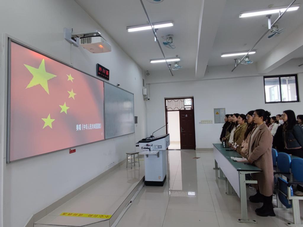 首先,到达颁奖典礼现场的教师和员工起立并奏唱国歌。