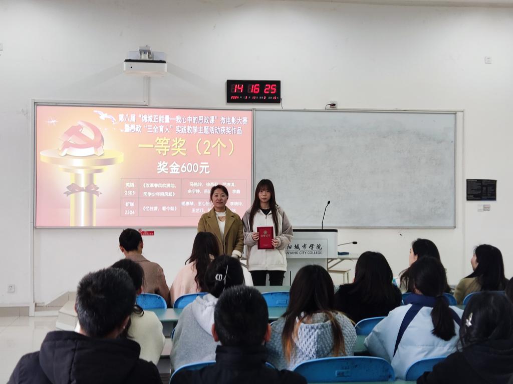 颁奖环节结束后,在典礼上播放本次“绵城正能量暨我心中的思政课”微电影大赛的一等奖作品,同学们都在全神贯注地观看,观看结束后现场爆发出雷鸣般的掌声以示对此作品的肯定。