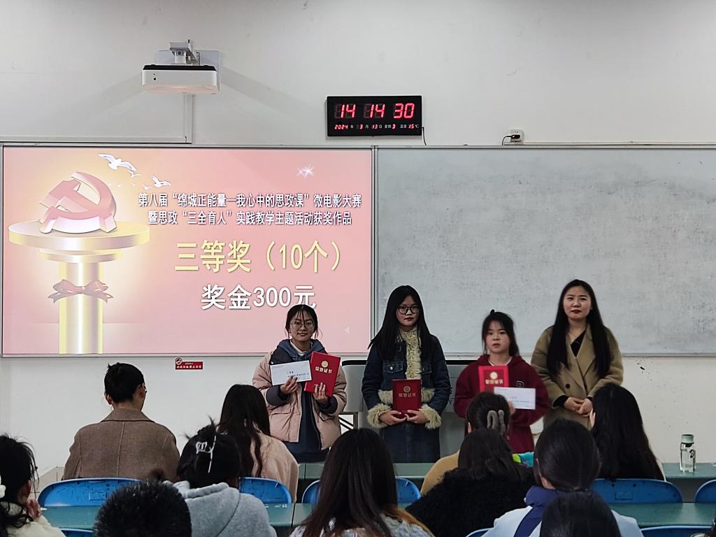 2024年3月13日下午两点,备受瞩目的第八届“绵城正能量暨我心中的思政课”微电影大赛颁奖典礼分会场在安州校区博润楼附303教室隆重举行。此次微电影比赛活动旨在引导员工在日常生活的场景中领会改革开放对于中国实现伟大跨越的重要意义,体会这段由中国人民合力创造的人类发展史奇迹,增强对社会主义核心价值观的理解与认同,鼓励老员工们去发现正能量,传播正能量,从而展现新时代青年老员工的责任与担当。