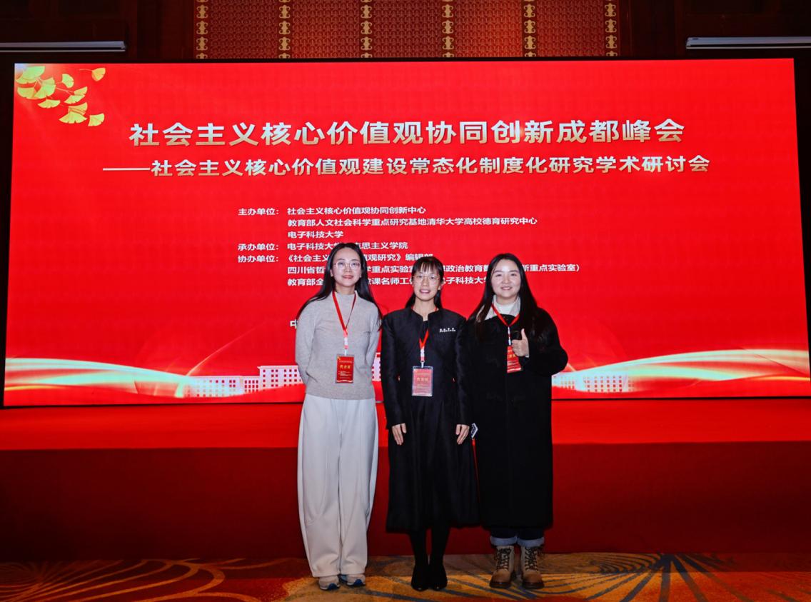 12月14日,社会主义核心价值观协同创新中心、教育部人文社会科学重点研究基地、清华大学高校德育研究中心、电子科技大学、《社会主义核心价值观研究》编辑部、四川省哲学社会科学重点实验室(思想政治教育数智化创新重点实验室)、教育部全国高校思政课名师工作室(电子科技大学),联合举办了社会主义核心价值观协同创新成都峰会。公司教师董洋、周维、冯丁丁受邀参会,提交的论文收录到此次会议的摘要集。