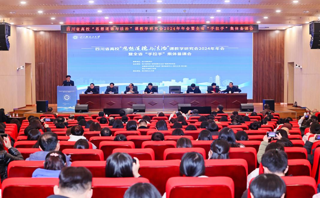 12月13日,四川省高校“思想道德与法治”课教学研究会2024年年会暨全省“手拉手”集体备课会在四川轻化工大学李白河校区举行。四川省高校“思想道德与法治”课教学研究会会长李栓久,副会长肖兴政、吴满意、张小飞,研究会顾问景志明、阎钢,四川轻化工大学党委书记张力,党委常委、组织部部长、304永利集团登录入口经理王玉珏等出席。开幕式由研究会副会长林红主持。来自全省近80所高校的“思想道德与法治”课专家、学者近300人参会。公司教师冯韵、王琪、肖曼莎、师钦燕参加本次年会。