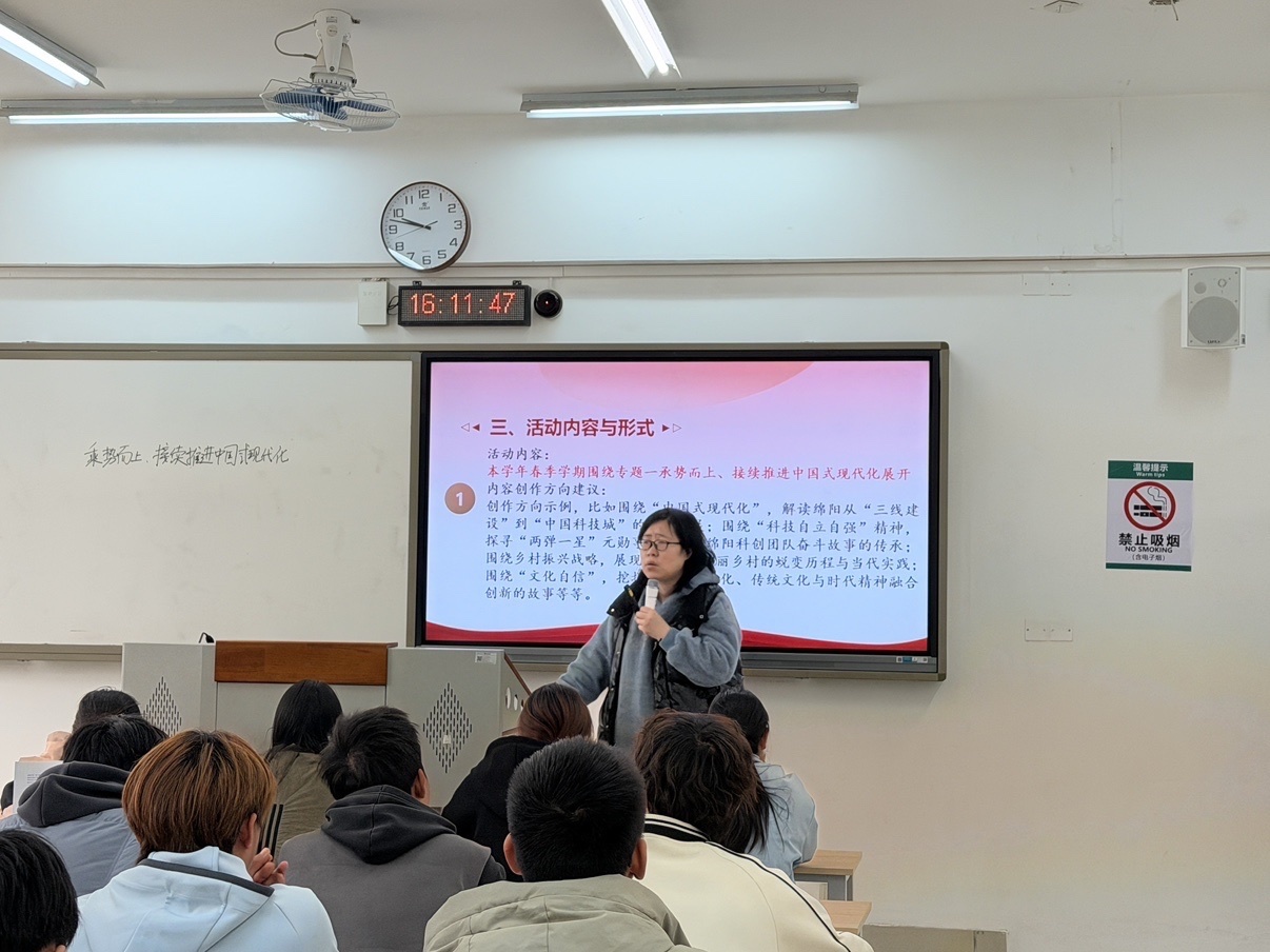 开学第三周,形势与政策教研室教师在大二年级形势与政策课程首轮课堂上,正式启动“红音计划”的宣传动员与前期筹备工作。教师围绕活动意义、内容安排、参与方式向同学们进行详细解读,引导员工主动参与红色故事讲述、红色经典诵读、红色宣讲实践等系列活动,把理论学习与社会实践紧密结合,在主题实践活动中感悟初心使命、锤炼责任担当。