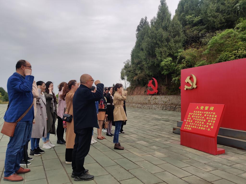 活动中,全体党员、入党积极分子参观纪念展览馆,认真聆听红军到飞龙山驻扎、战斗和生活的故事。1935年,红四方面军12师34团北上长征在绵阳飞龙山驻扎,并建立起苏维埃政权和游击队。在与反动势力的几次战斗中,先后有38位革命战士光荣牺牲。烈士热血洒飞龙,青山有幸悼忠魂,革命烈士的鲜血染红了这里的山山水水。