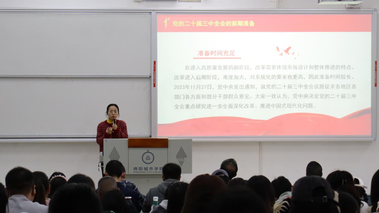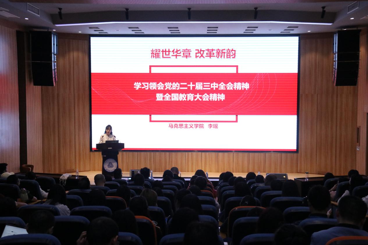 宣讲团成员陈亮、王婉、刘瑶也分赴各分党委,用通俗易懂的语言和生动鲜活的事例,围绕习近平总书记在党的二十届三中全会上的重要讲话精神、全会《决定》提出的进一步全面深化改革重大举措、贯彻落实全会精神的基本要求等内容进行解读宣讲,主题鲜明、突出重点,联系实际、以学促干,广泛激发了广大教职员工落实改革任务的责任感使命感。